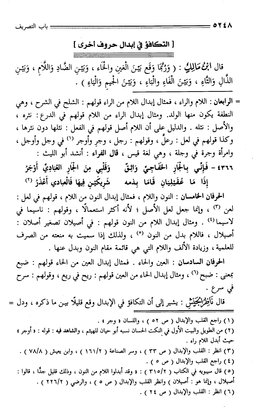 قال ناظر الجيش: يشير إلى أن التكافؤ في الإبدال وقع قليلا بين ما ذكره، ودل -