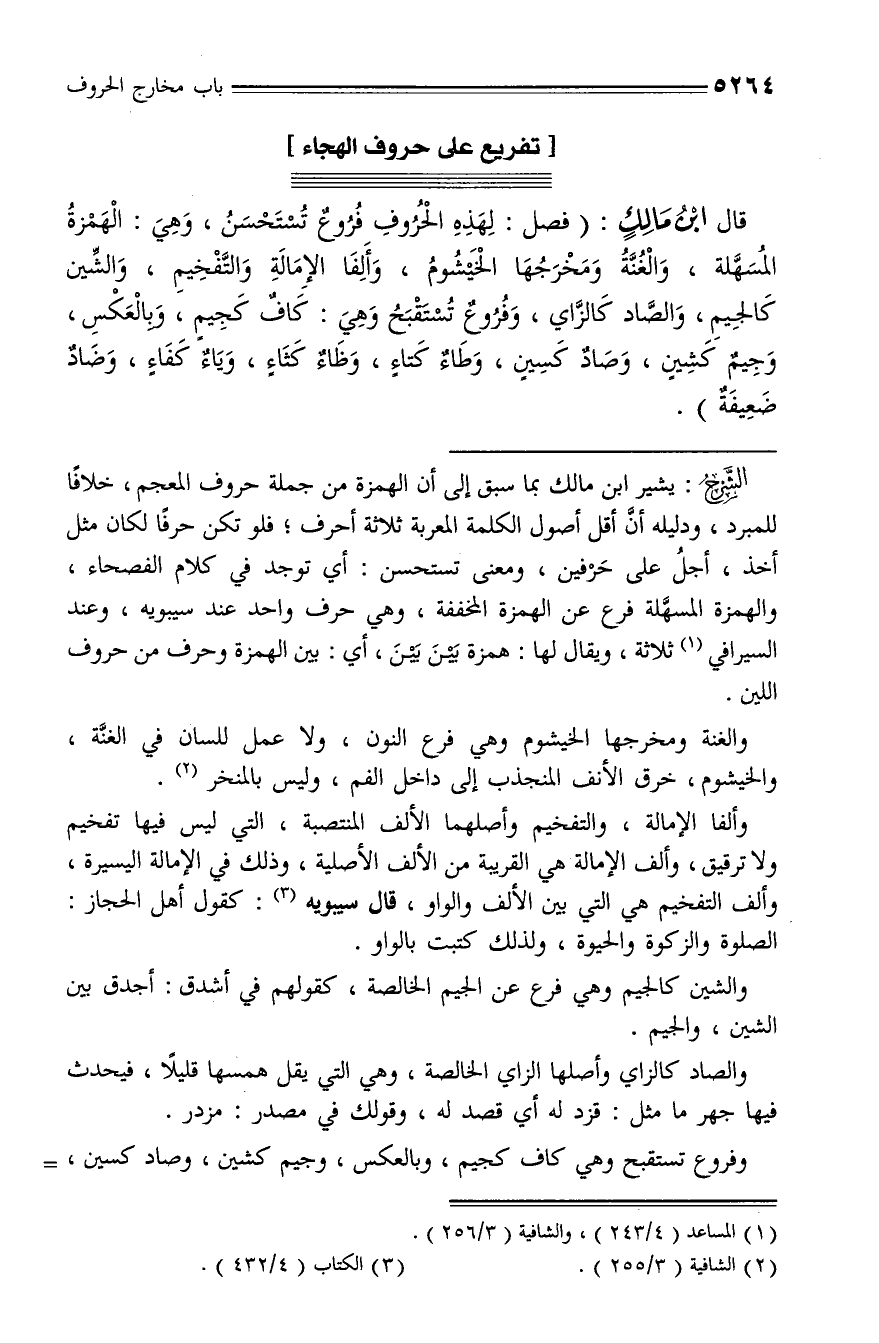 قال ابن مالك: (فصل: لهذه الحروف فروع تستحسن، وهي: الهمزة المسهّلة، والغنّة ومخرجها الخيشوم، وألفا الإمالة والتّفخيم، والشّين كالجيم، والصّاد كالزّاي، وفروع تستقبح وهي: كاف كجيم، وبالعكس، وجيم كشين، وصاد كسين، وطاء كتاء، وظاء كثاء، وياء كفاء، وضاد ضعيفة).