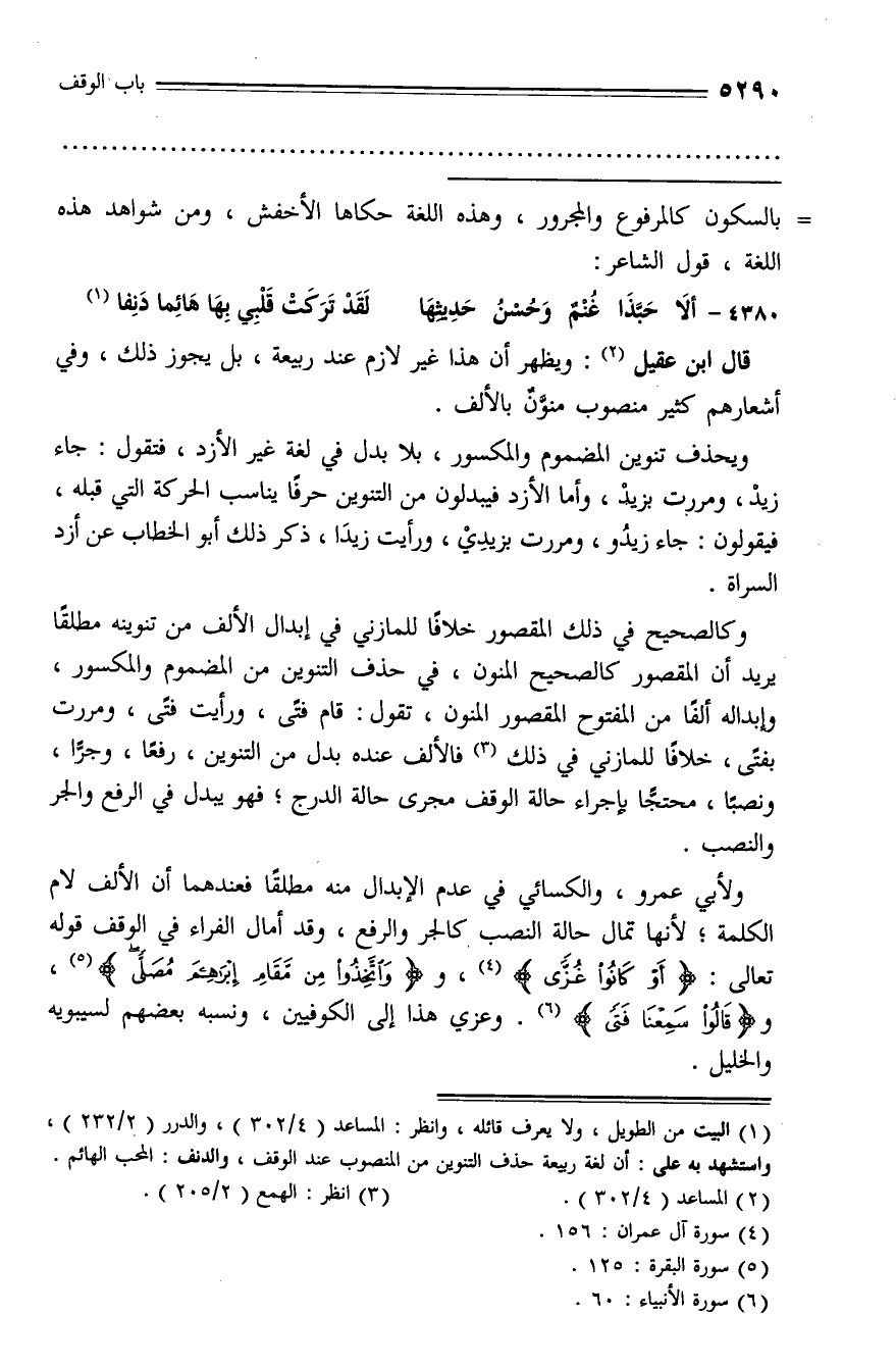 قال ابن عقيل (¬2): ويظهر أن هذا غير لازم عند ربيعة، بل يجوز ذلك، وفي أشعارهم كثير منصوب منوّن بالألف.