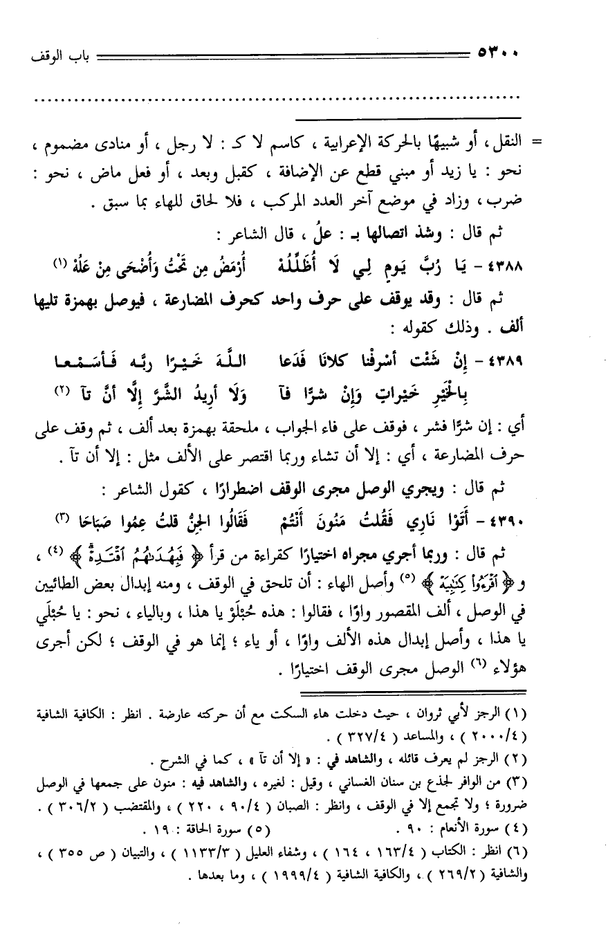 (¬1) الرجز لأبي ثروان، حيث دخلت هاء السكت مع أن حركته عارضة. انظر: الكافية الشافية (4/ 2000)، والمساعد (4/ 327).