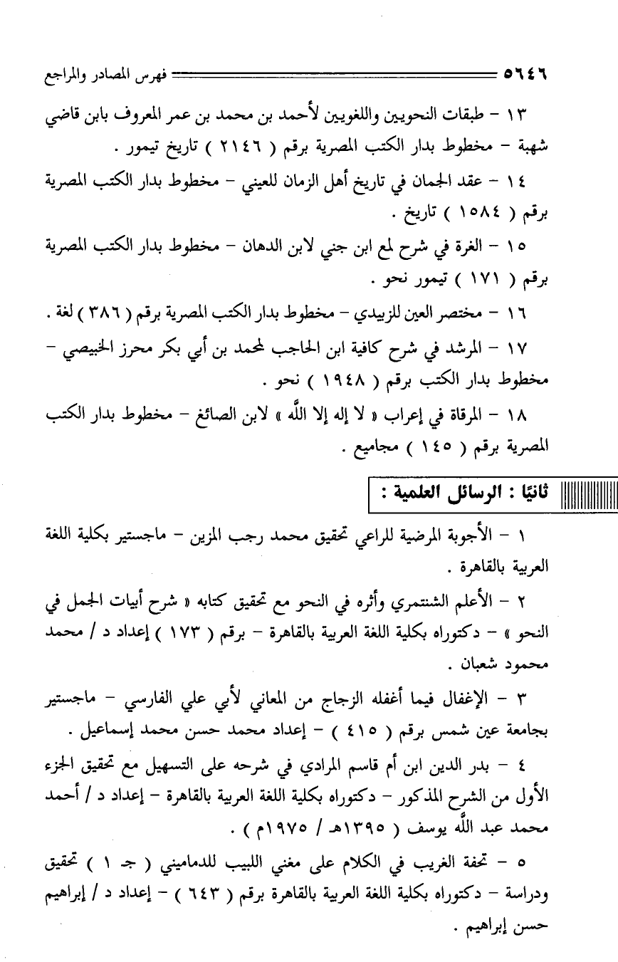 4 - بدر الدين ابن أم قاسم المرادي في شرحه على التسهيل مع تحقيق الجزء الأول من الشرح المذكور - دكتوراه بكلية اللغة العربية بالقاهرة - إعداد د/ أحمد محمد عبد الله يوسف (1395 هـ/ 1975 م).
