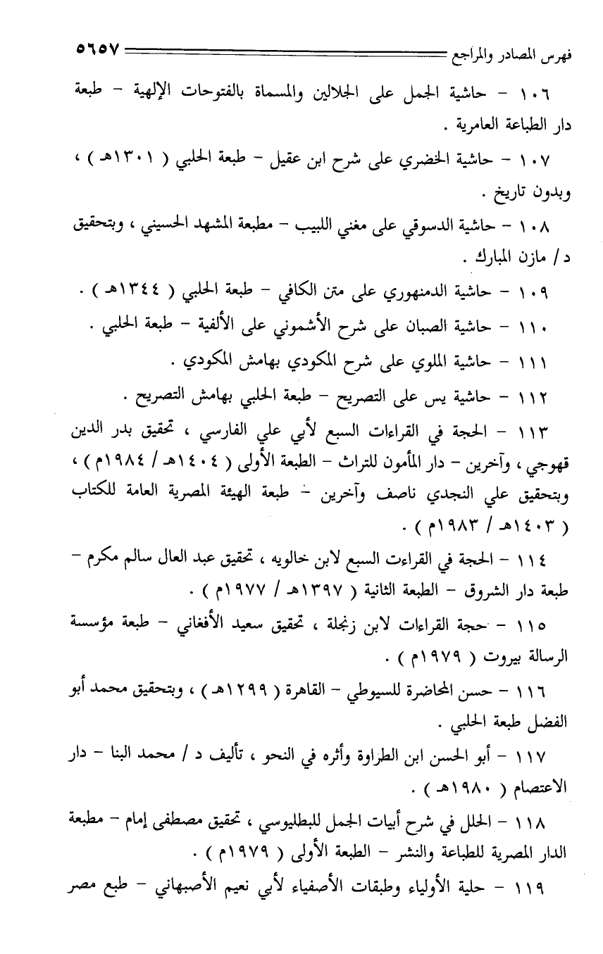107 - حاشية الخضري على شرح ابن عقيل - طبعة الحلبي (1301 هـ)، وبدون تاريخ.
