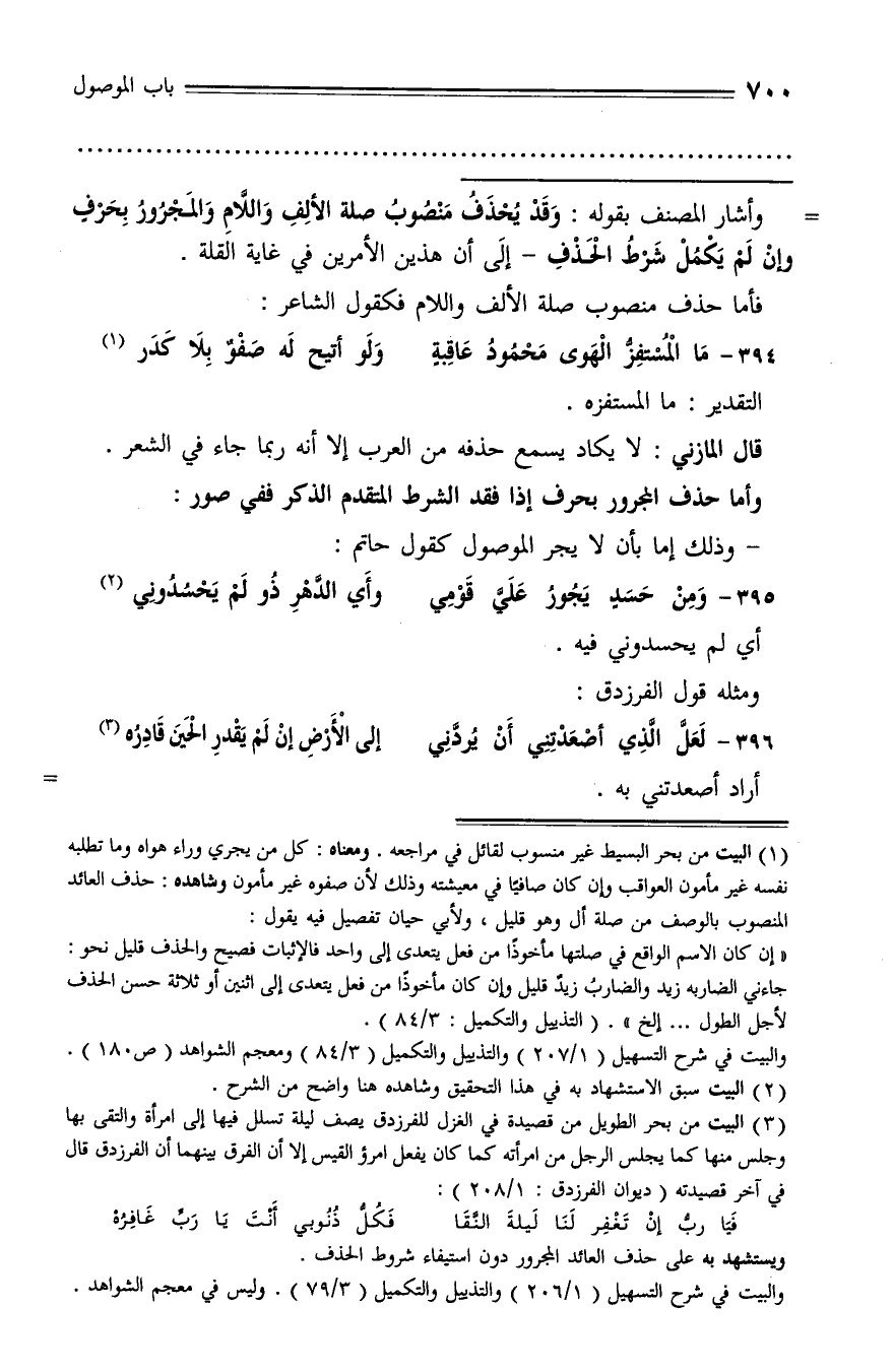 «إن كان الاسم الواقع في صلتها مأخوذا من فعل يتعدى إلى واحد فالإثبات فصيح والحذف قليل نحو: