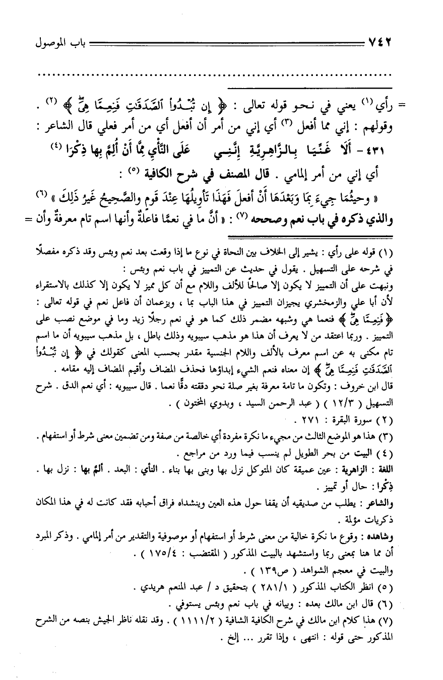 (¬7) هذا كلام ابن مالك في شرح الكافية الشافية (2/ 1111). وقد نقله ناظر الجيش بنصه من الشرح المذكور حتى قوله: انتهى، وإذا تقرر ... إلخ.