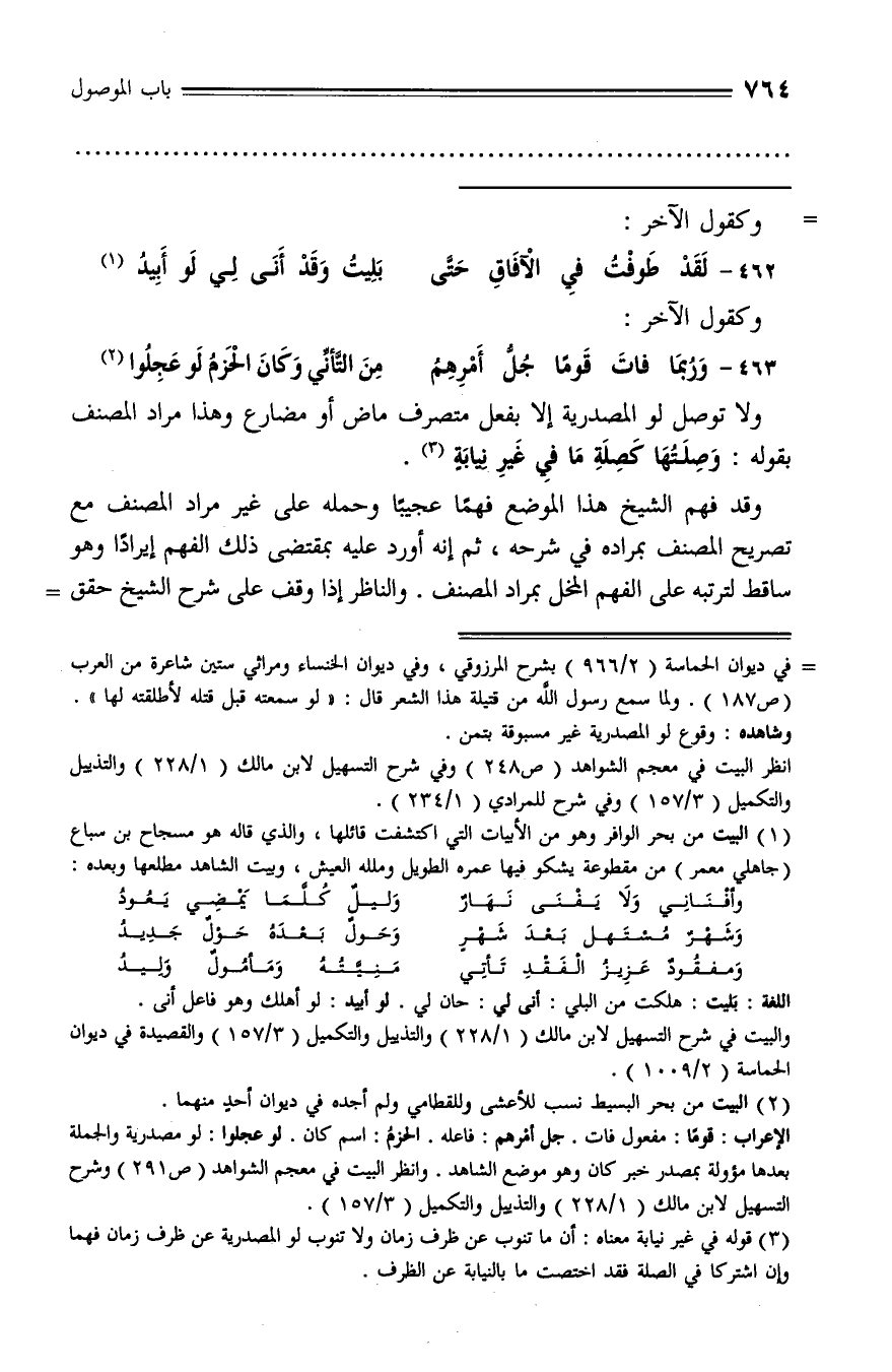والبيت في شرح التسهيل لابن مالك (1/ 228) والتذييل والتكميل (3/ 157) والقصيدة في ديوان الحماسة (2/ 1009).