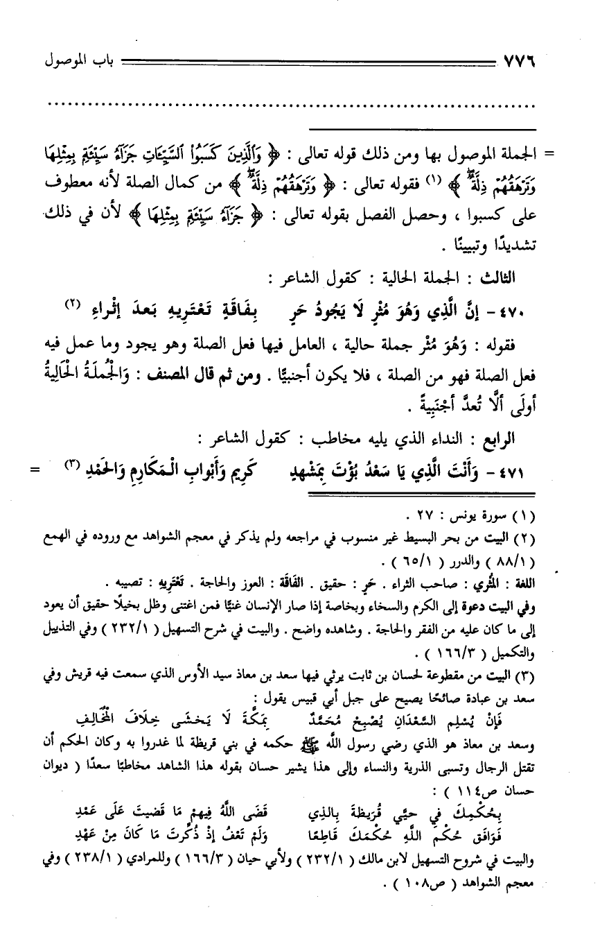 471 - وأنت الّذي يا سعد بؤت بمشهد ... كريم وأبواب المكارم والحمد (¬3)