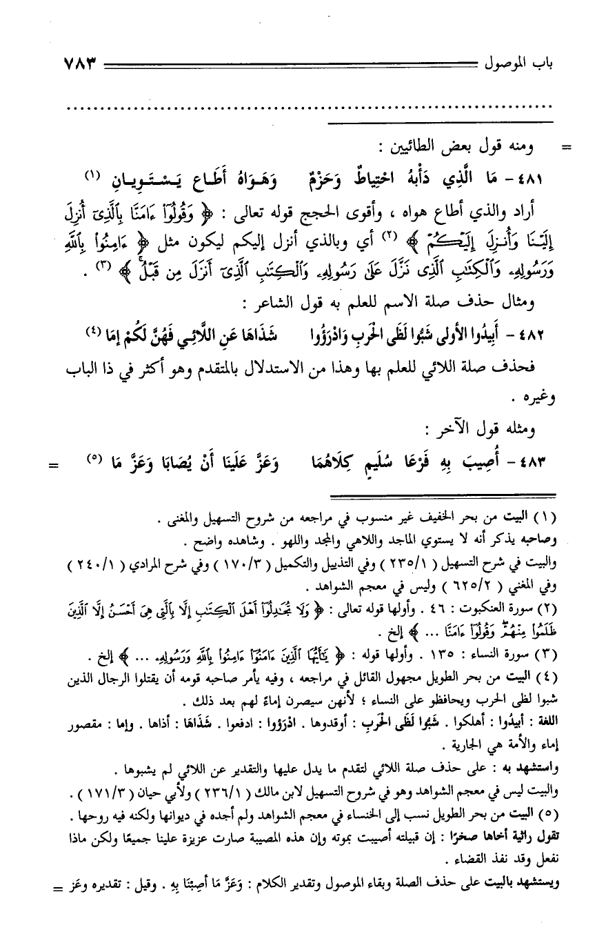 ومثال حذف صلة الاسم للعلم به قول الشاعر: