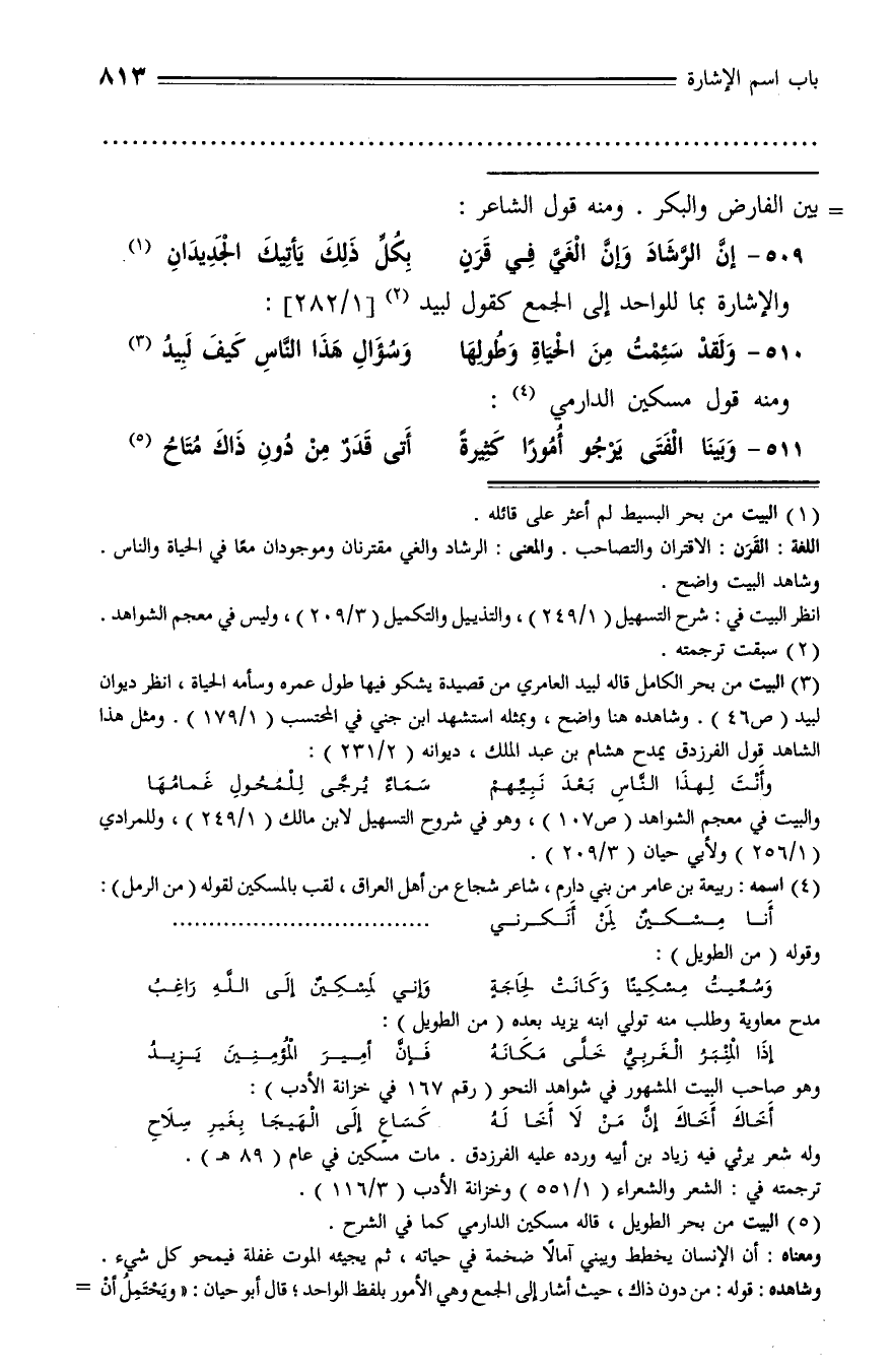 (¬4) اسمه: ربيعة بن عامر من بني دارم، شاعر شجاع من أهل العراق، لقب بالمسكين لقوله (من الرمل):