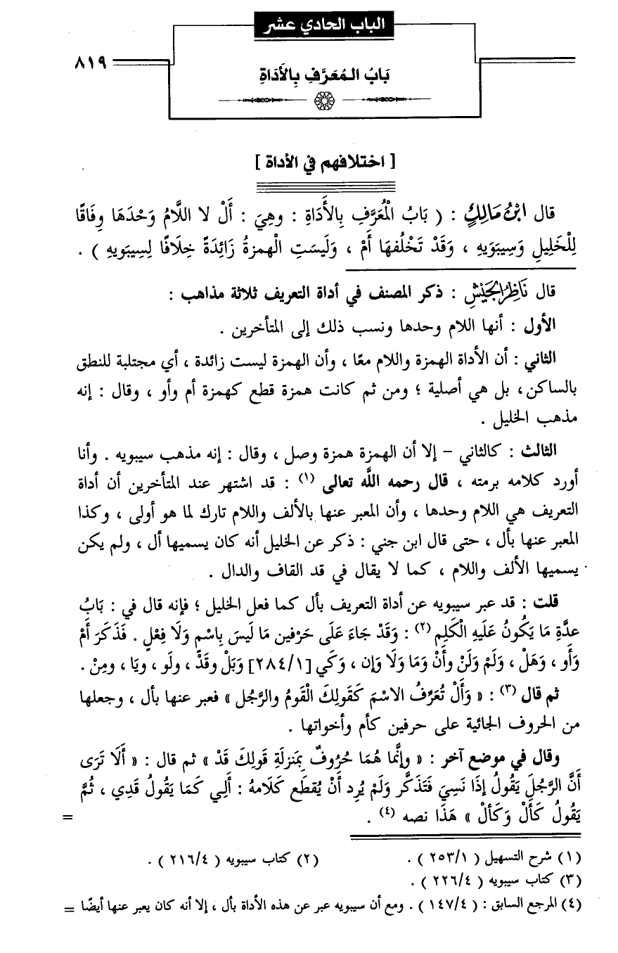 (¬4) المرجع السابق: (4/ 147). ومع أن سيبويه عبر عن هذه الأداة بأل، إلا أنه كان يعبر عنها أيضا -