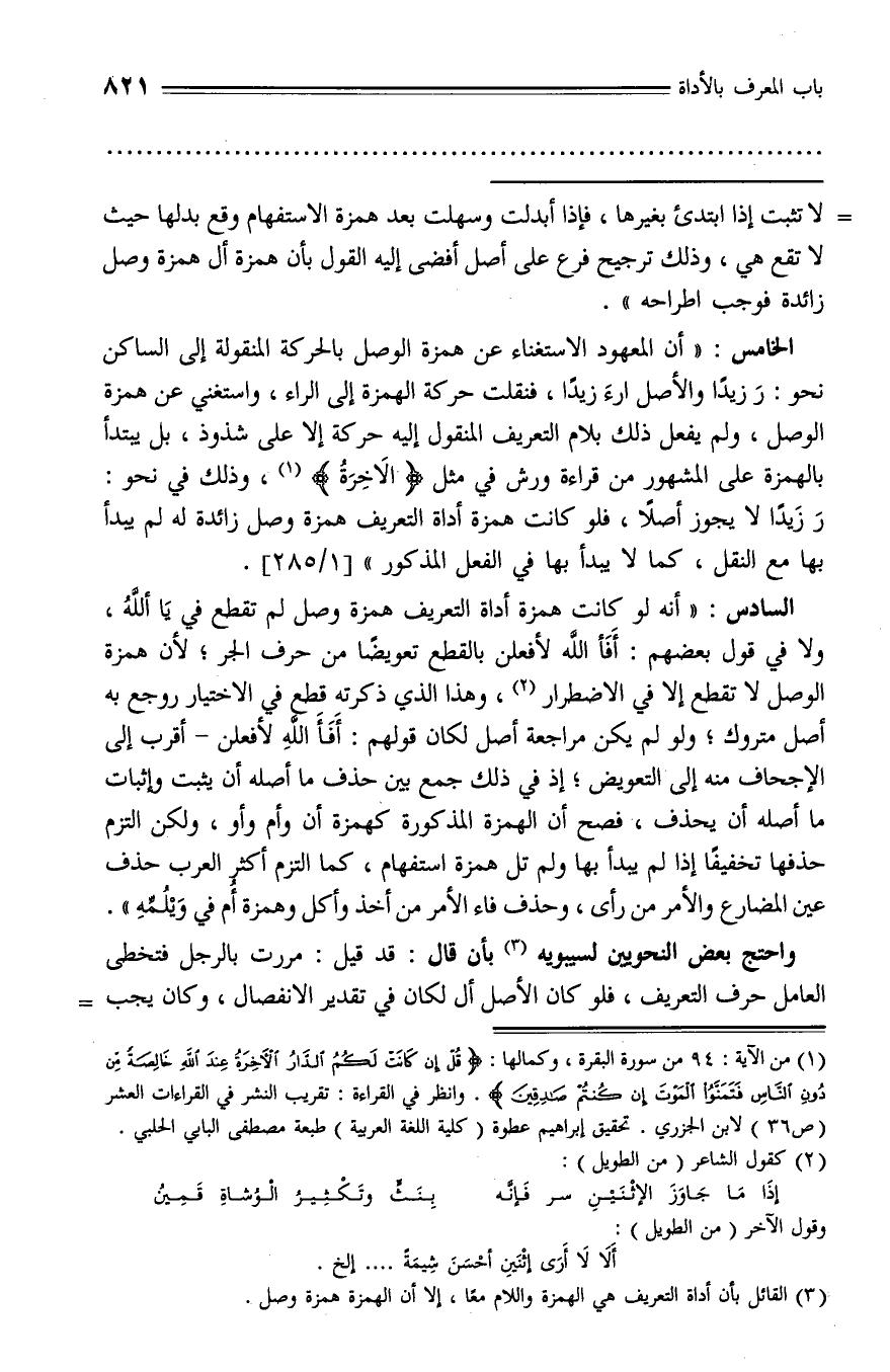 (¬3) القائل بأن أداة التعريف هي الهمزة واللام معا، إلا أن الهمزة همزة وصل.