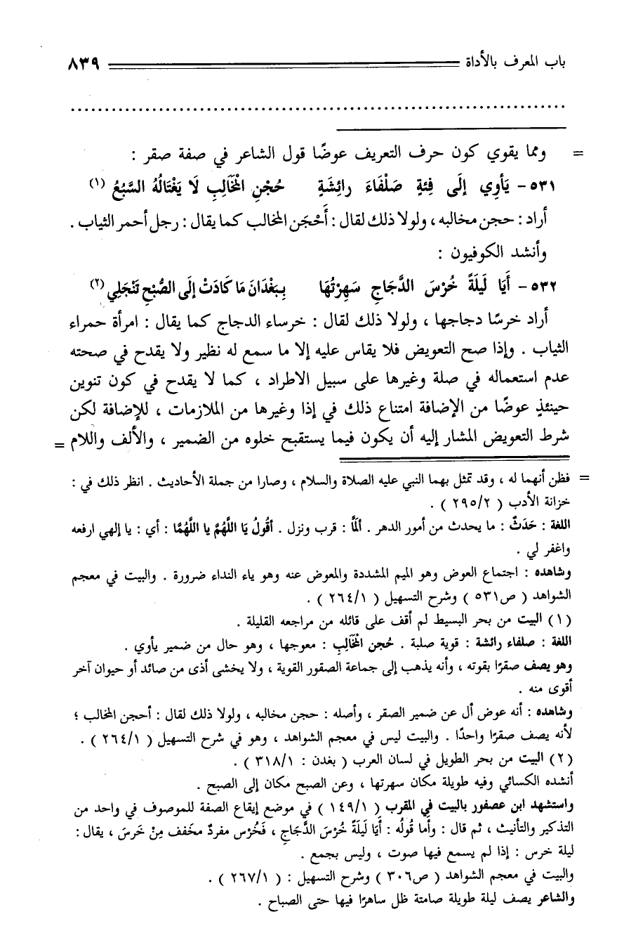 ومما يقوي كون حرف التعريف عوضا قول الشاعر في صفة صقر: