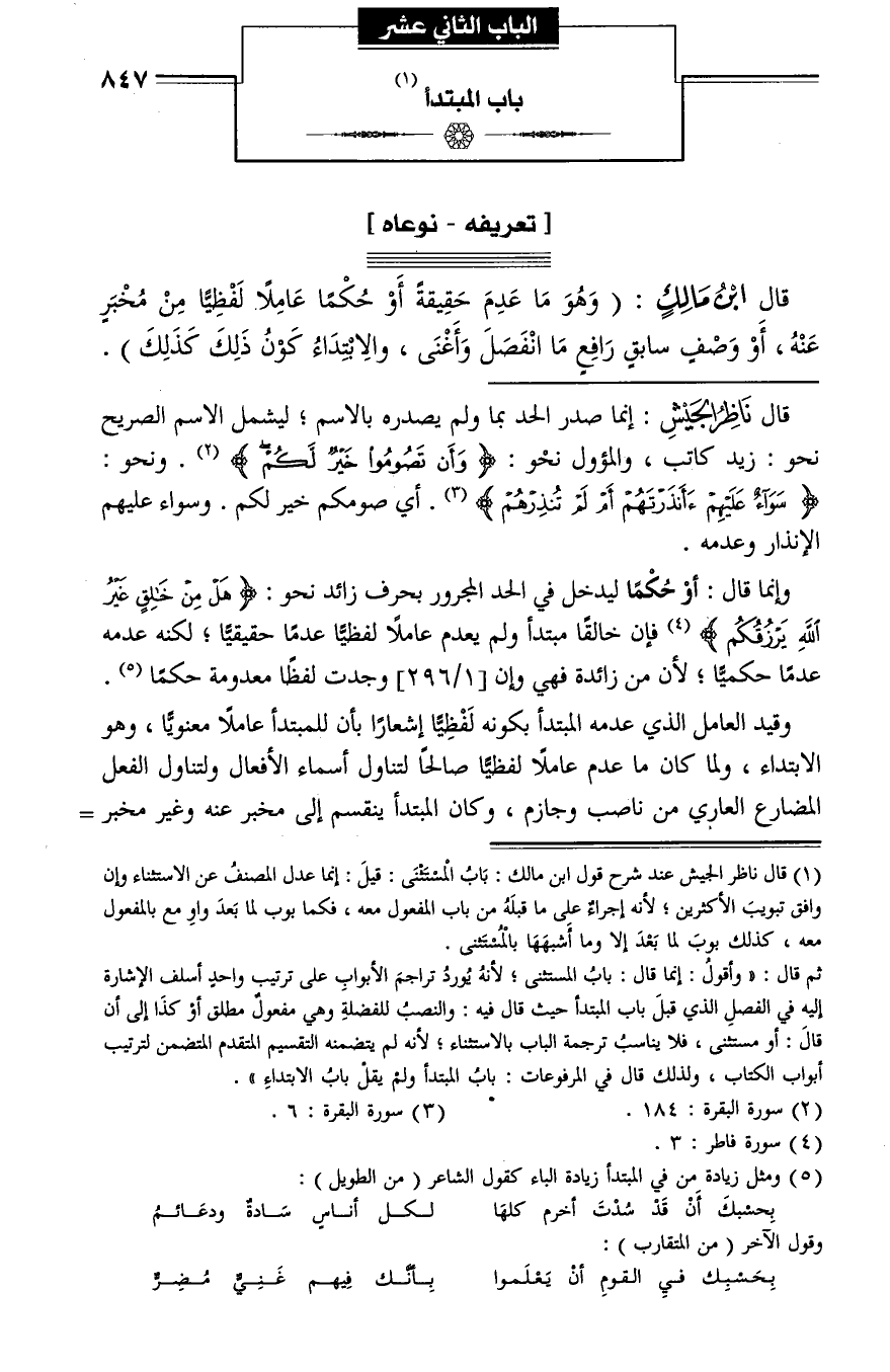 الباب الثاني عشر باب المبتدأ (¬1)