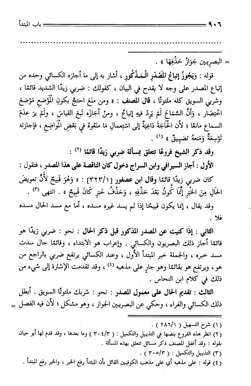 (¬2) انظر هذه الفروع بنصها في التذييل والتكميل: (3/ 304) وما بعدها، وقد قدم لها أبو حيان بقوله: وقد أغفل المصنف ذكر مسائل تتعلق بهذه المسألة.