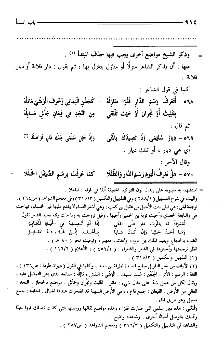 والشاهد في التذييل والتكميل (3/ 316) ومعجم الشواهد (ص 287).