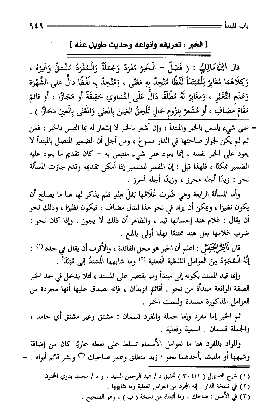 (¬1) شرح التسهيل (1/ 304) تحقيق د/ عبد الرحمن السيد، ود/ محمد بدوي المختون.