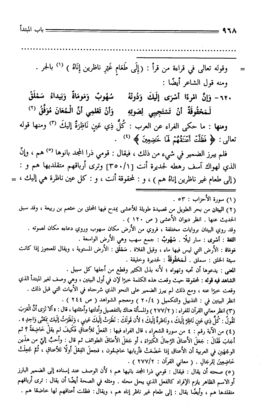(إِلى طَعامٍ غَيْرَ ناظِرِينَ إِناهُ)، و: لمحقوقة أنت، و: كل عين ناظرة هي إليك، -