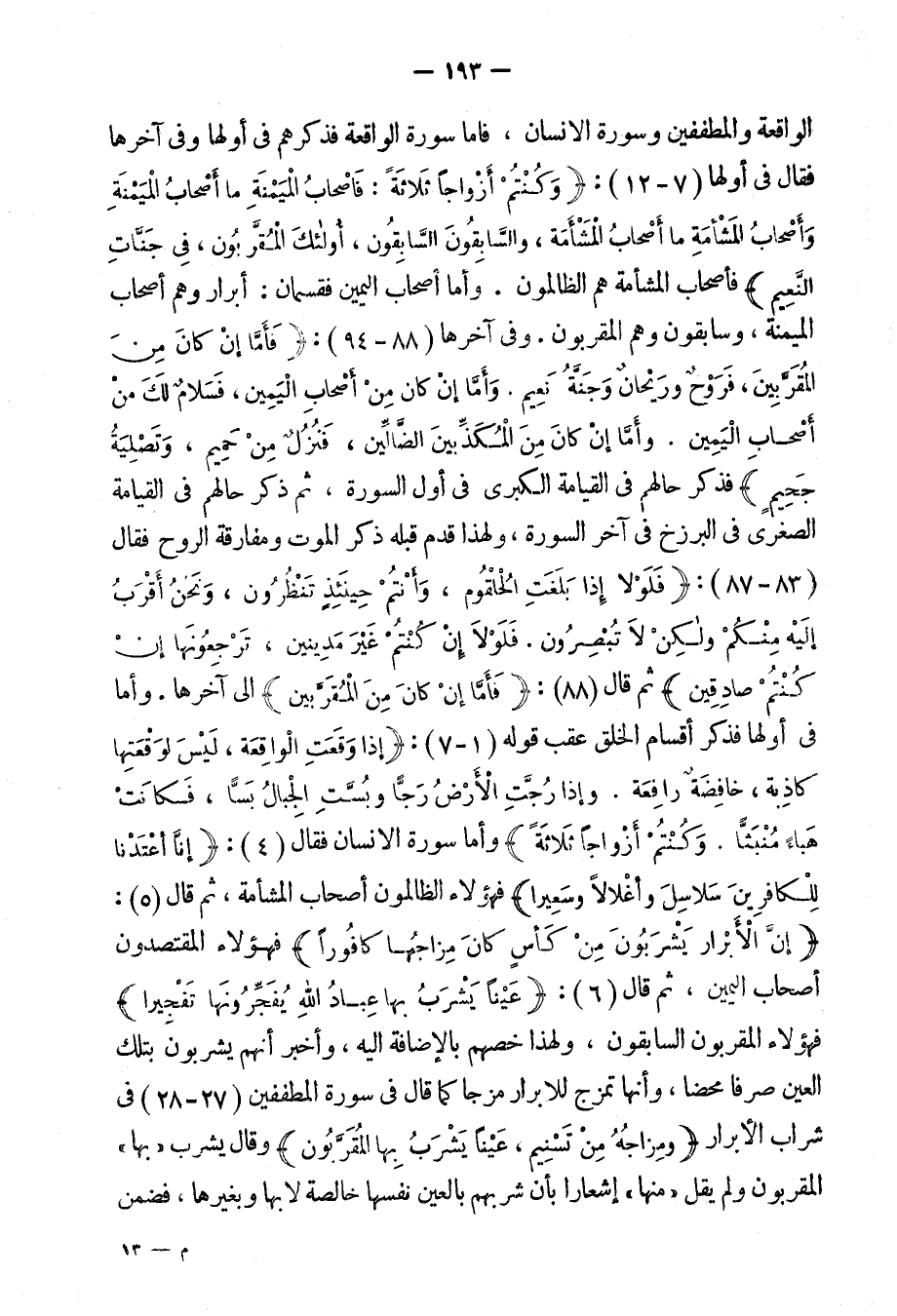 الواقعة والمطففين وسورة الإنسان، فأما سورة الواقعة فذكرهم فى أولها وفى آخرها فقال فى أولها: {وَكُنتُمْ أَزْوَاجاً ثَلاثَةً فأَصْحَابُ المَيْمَنَةِ مَا أَصْحَابُ المَيْمَنَةِ وَأَصْحَابُ الْمَشْأَمَةِ مَا أَصْحَابُ الْمَشْأَمَةِ وَالسَّابِقُونَ السَّابِقُونَ أُولَئِكَ المُقَرَّبُونَ فِى جَنَّاتِ النَّعِيم}