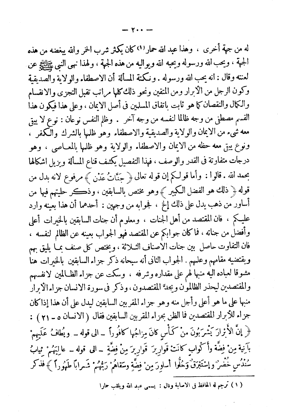 له من جهة أخرى، وهذا عبد الله حمار كان يكثر شرب الخمر والله يبغضه من هذه الجهة، ويحب الله ورسوله ويحبه الله ويواليه من هذه الجهة، ولهذا نهى النبي صلى الله عليه وسلم عن لعنه وقال: إنه يحب الله ورسوله ونكتة المسألة أن الاصطفاء والولاية والصديقية وكون الرجل من الأبرار ومن المتقين ونحو ذلك كلها مراتب تقبل التجزيء والانقسام والكمال والنقصان كما هو ثابت باتفاق المسلمين في أصل الإيمان، وعلى هذا فيكون هذا القسم مصطفى من وجه ظالما لنفسه من وجه آخر.