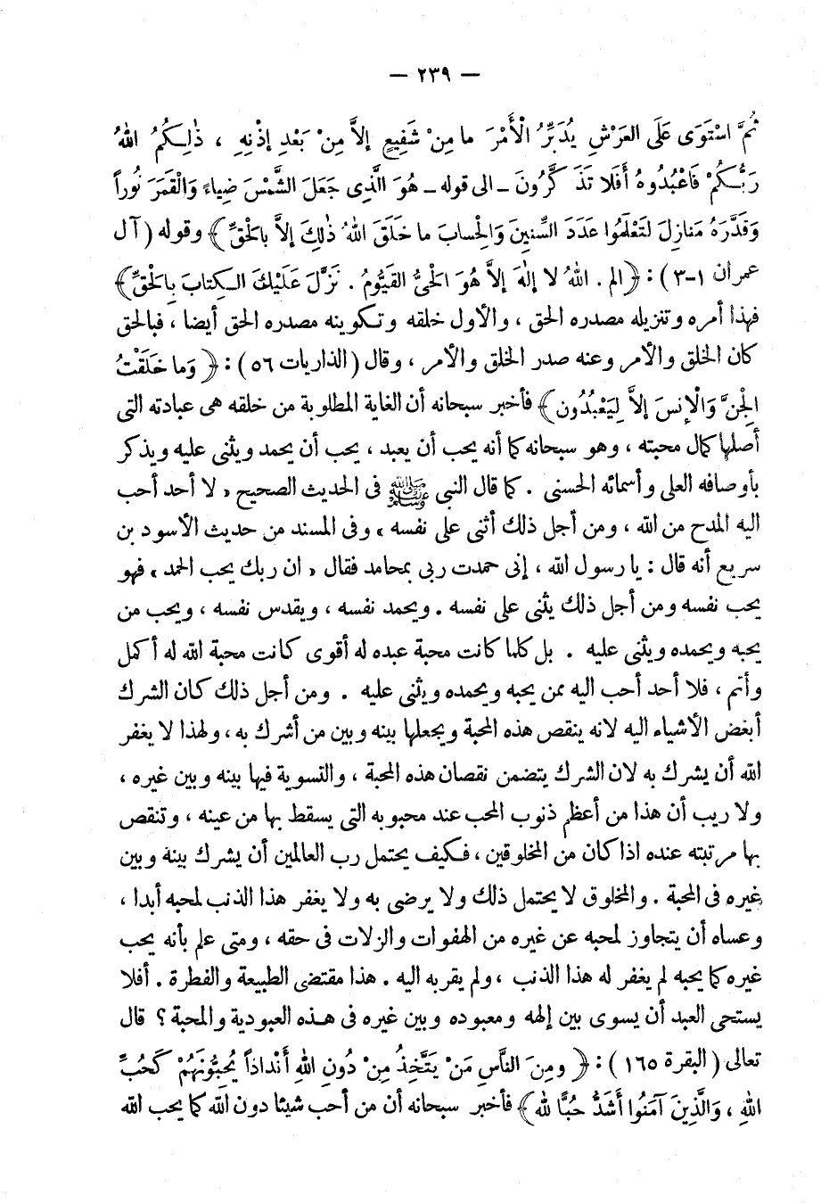 ثُمَّ اسْتَوَى عَلَى الْعَرْشِ يُدَبِّرُ الأَمْرَ مَا مِنْ شَفِيعٍ إِلا مِن بَعْدِ إِذْنِهِ ذلِكُمُ اللهُ رَبُّكُمْ فَاعْبُدُوهُ أَفلا تَذَكّرُونَ} إلى قوله: {هُوَ الَّذِى جَعَلَ الشَّمْسَ ضِيَاءً وَالْقَمَرَ نُوراً وَقَدَّرَهُ مَنَازِلَ لِتَعْلَمُوا عَدَد السِّنِينَ وَالْحِسَابَ مَا خَلَقَ اللهُ ذَلِكَ إِلا بِالْحَقِّ} [يونس: 3] ، وقوله: {آلَم اللهُ لا إِلَهَ إِلا هُوَ الْحَى القَيُّومُ نَزَّلَ عَلَيْكَ الْكِتَابَ بِالْحَقِّ} [آل عمران: 1- 3] .
