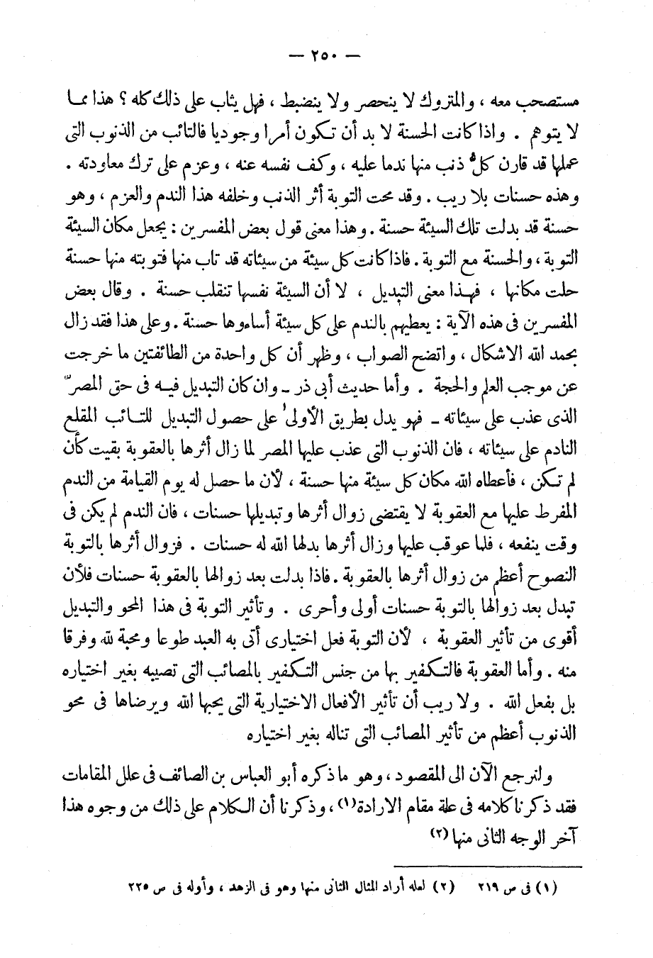 فزوال أثرها بالتوبة النصوح أعظم من زوال أثرها بالعقوبة، فإذا بدلت بعد زوالها بالعقوبة حسنات فلأن تبدل بعد زوالها بالتوبة حسنات أولى وأحرى. وتأثير التوبة فى هذا المحو والتبديل أقوى من تأْثير العقوبة لأن التوبة فعل اختيارى أَتى به العبد طوعاً ومحبة لله وفرقاً منه.