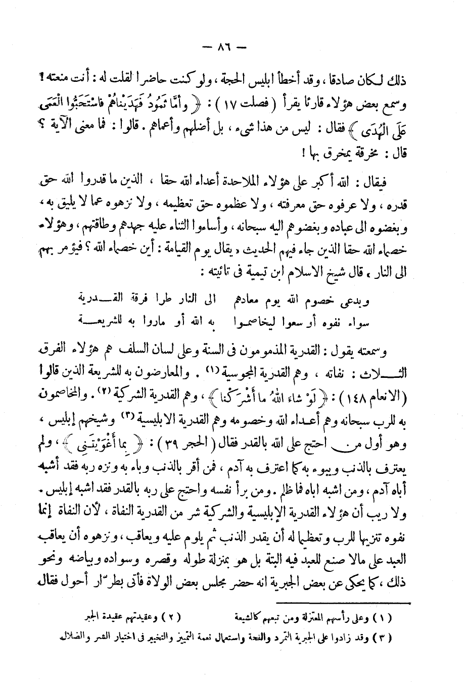 ويدعى خصوم الله يوم معاده ... إلى النار طراً فرقة القدرية