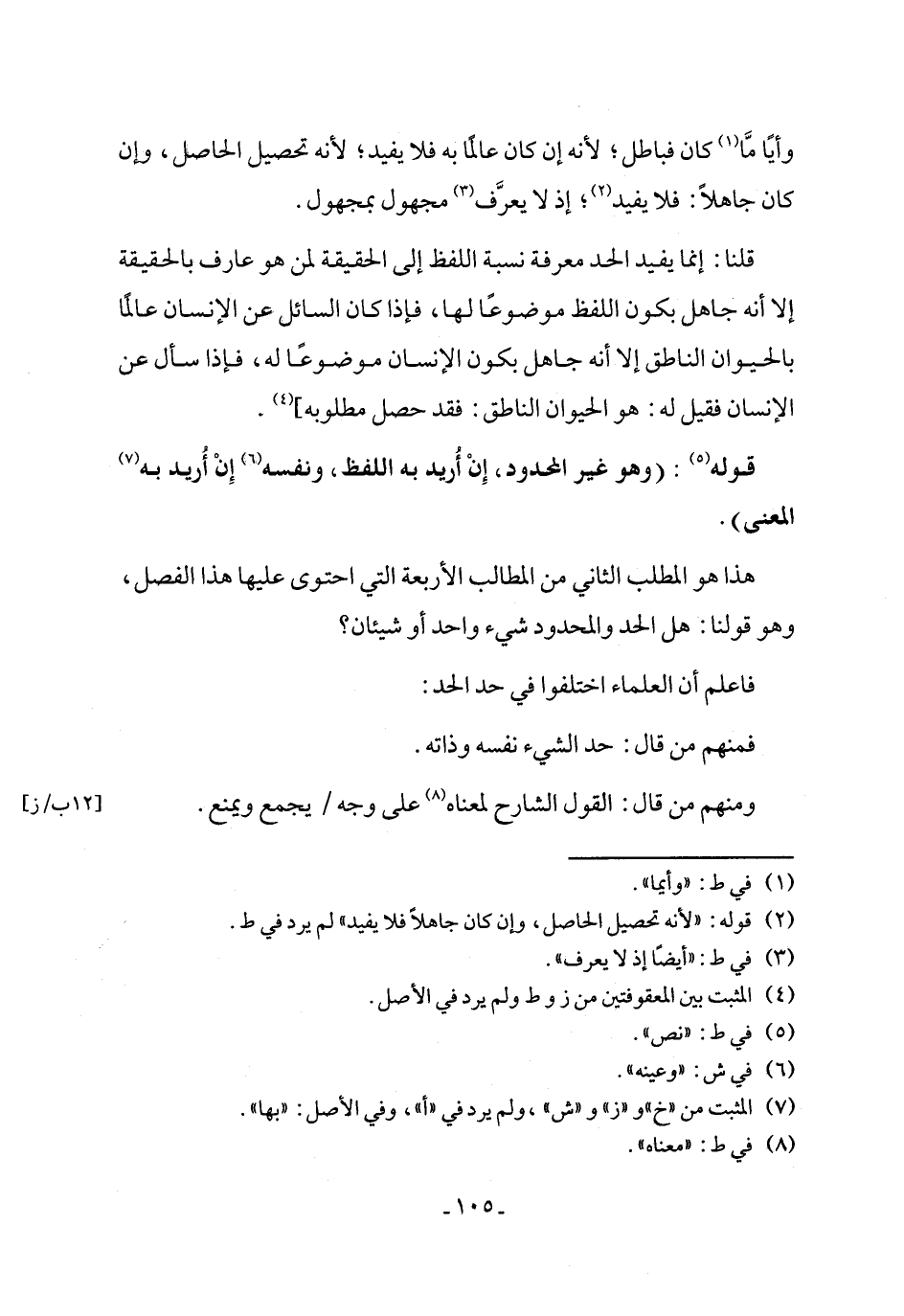 هذا هو المطلب الثاني من المطالب الأربعة التي احتوى عليها هذا الفصل، وهو قولنا: هل الحد والمحدود شيء واحد أو شيئان؟