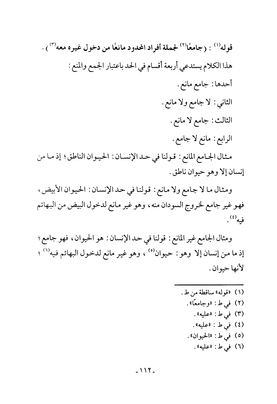 ومثال الجامع غير المانع: قولنا في حد الإنسان: هو الحيوان، فهو جامع؛ إذ ما من إنسان إلا وهو: حيوان (¬5)، وهو غير مانع لدخول البهائم فيه (¬6)؛ لأنها حيوان.
