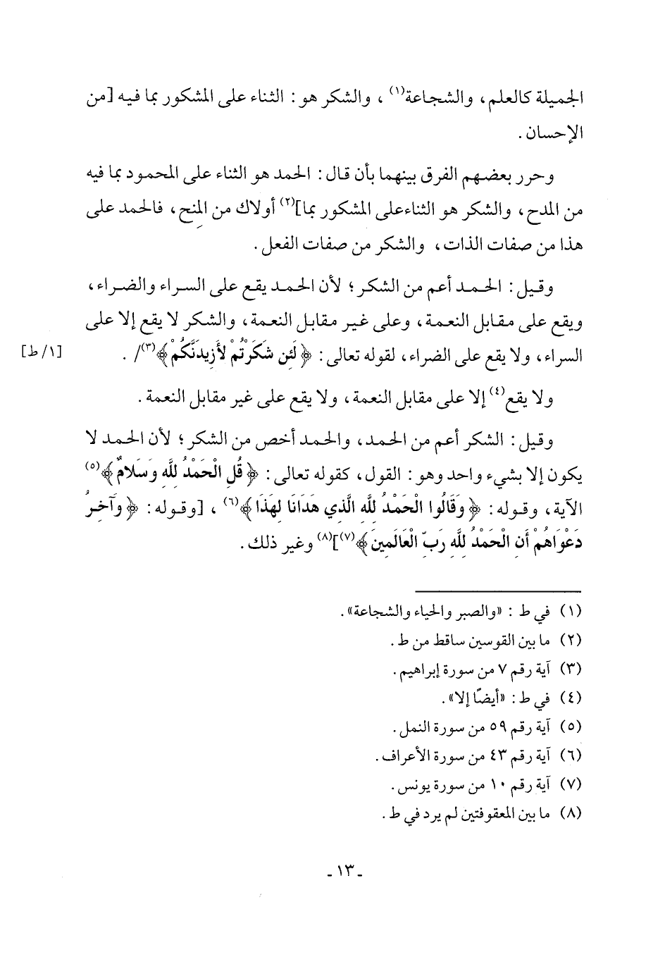 الجميلة كالعلم، والشجاعة (¬1)، والشكر هو: الثناء على المشكور بما فيه [من الإحسان.