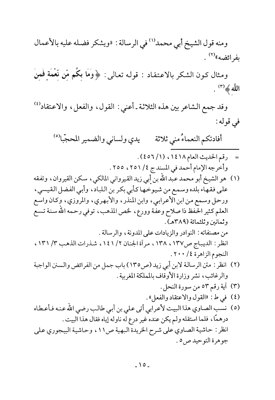 (¬2) انظر: متن الرسالة لابن أبي زيد (ص 135) باب جمل من الفرائض والسنن الواجبة والرغائب، نشر وزارة الأوقاف بالمملكة المغربية.