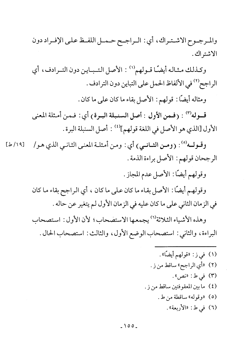 وهذه الأشياء الثلاثة (¬6) يجمعها الاستصحاب؛ لأن الأول: استصحاب البراءة، والثاني: استصحاب الوضع الأول، والثالث: استصحاب الحال.