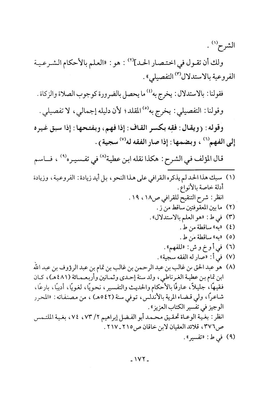 (¬1) سبك هذا الحد لم يذكره القرافي على هذا النحو، بل أيد زيادة: الفروعية، وزيادة أدلة خاصة بالأنواع.