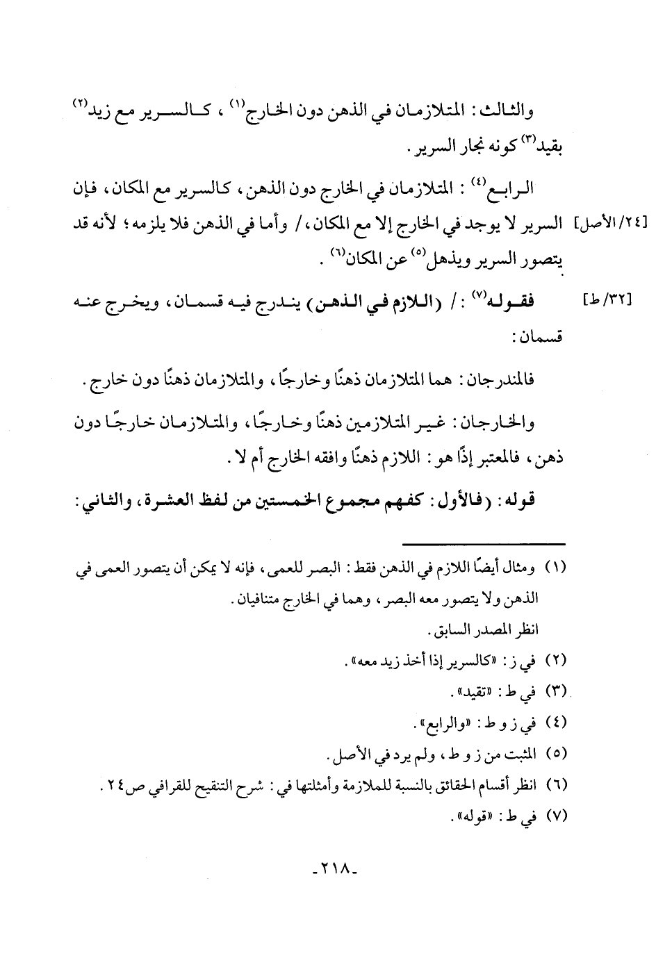 فقوله (¬7): (اللازم في الذهن) يندرج فيه قسمان، ويخرج عنه قسمان: