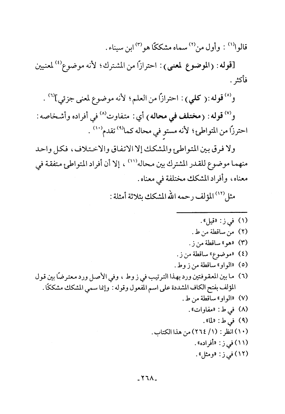 (¬6) ما بين المعقوفتين ورد بهذا الترتيب في ز وط، وفي الأصل ورد معترضًا بين قول المؤلف بفتح الكاف المشددة على اسم المفعول وقوله: وإنما سمى المشكك مشككًا.