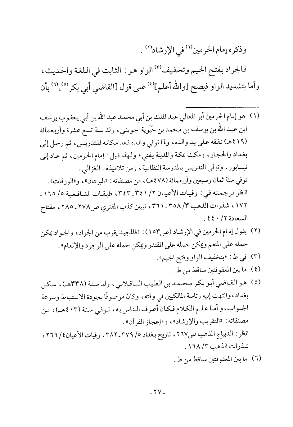 (¬2) يقول إمام الحرمين في الإرشاد (ص 153): "فالمجيد يقرب من الجواد، والجواد يمكن حمله على المنعم ويمكن حمله على المقتدر ويمكن حمله على الوجود والإنعام".