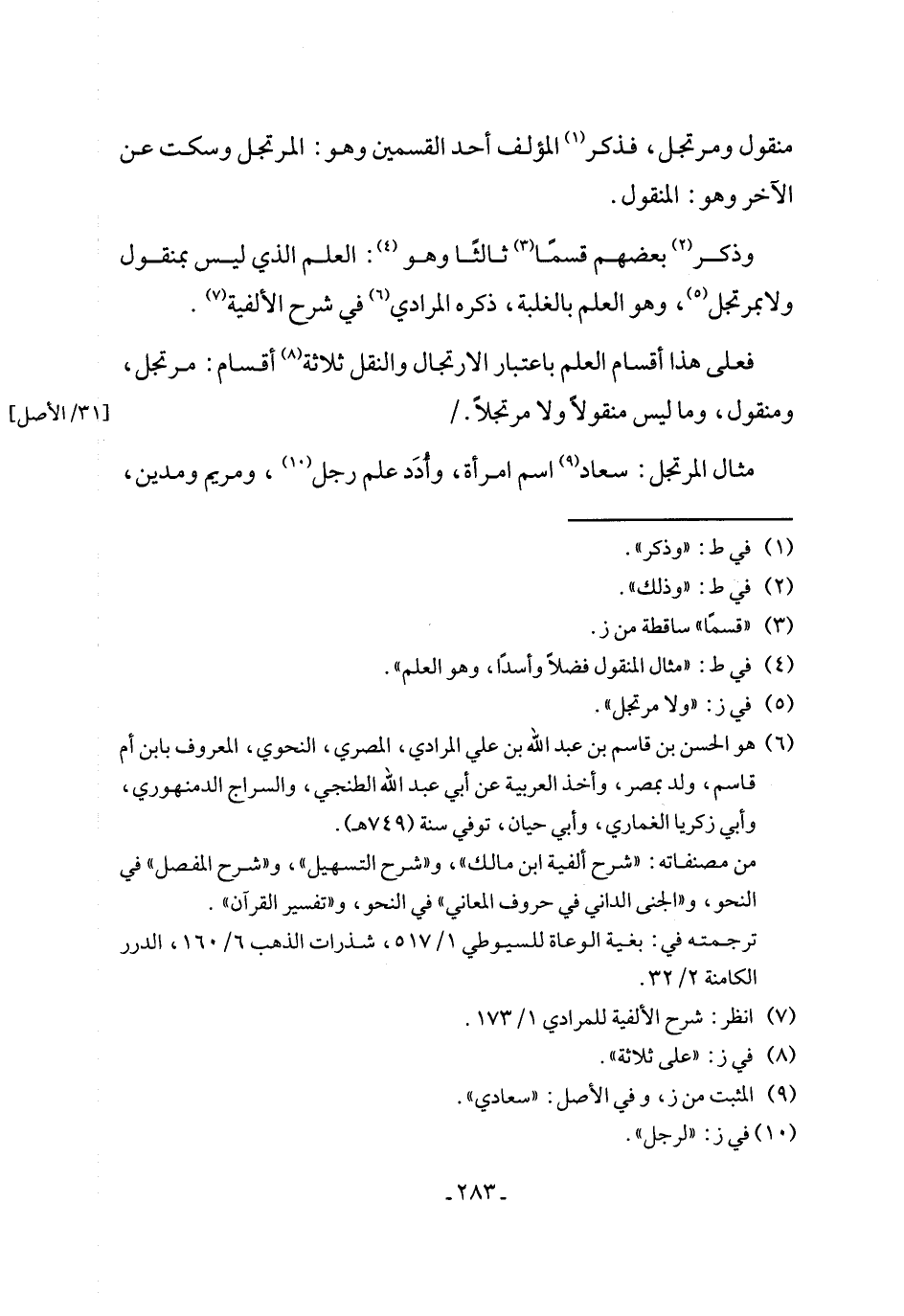 (¬7) انظر: شرح الألفية للمرادي 1/ 173.