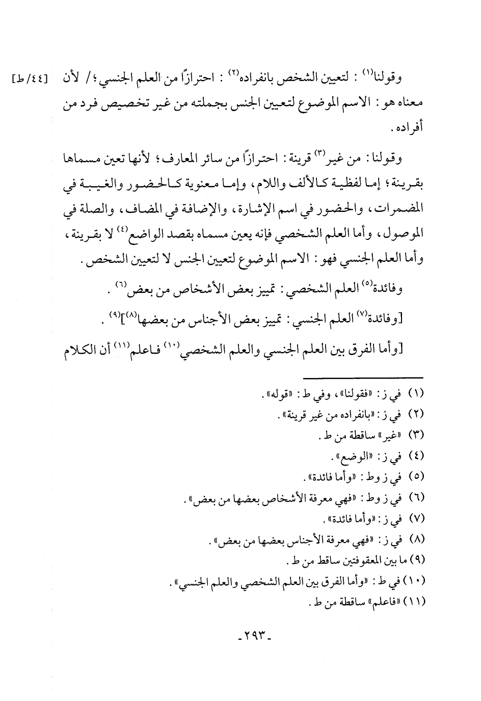 (¬10) في ط: "وأما الفرق بين العلم الشخصي والعلم الجنسي".