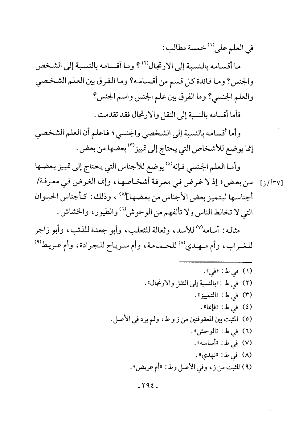 (¬5) المثبت بين المعقوفتين من ز وط، ولم يرد في الأصل.
