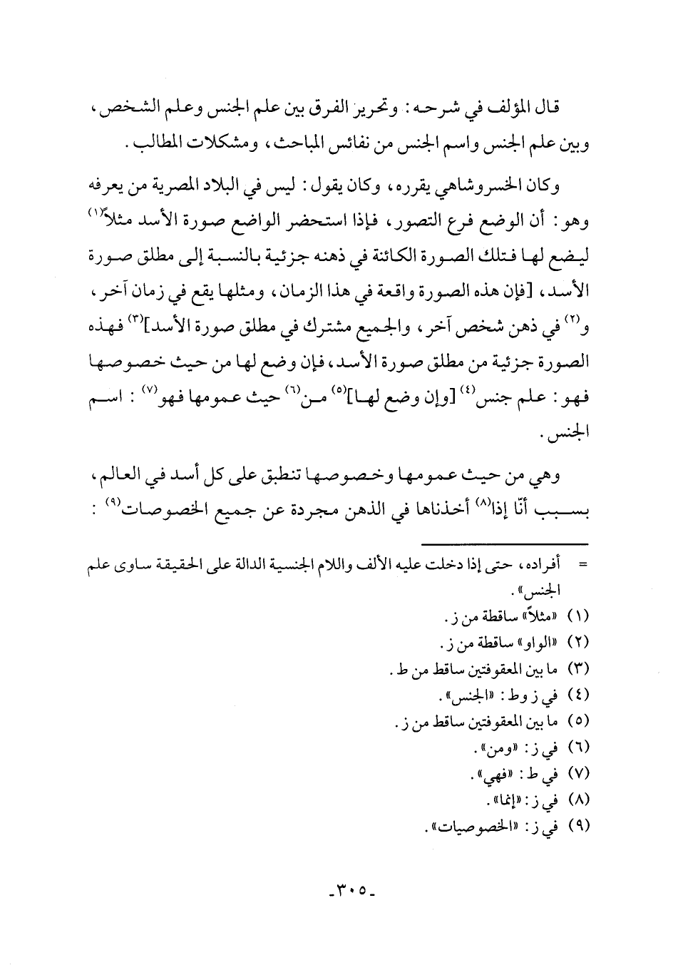 وهي من حيث عمومها وخصوصها تنطبق على كل أسد في العالم، بسبب أنّا إذا (¬8) أخذناها في الذهن مجردة عن جميع الخصوصات (¬9):