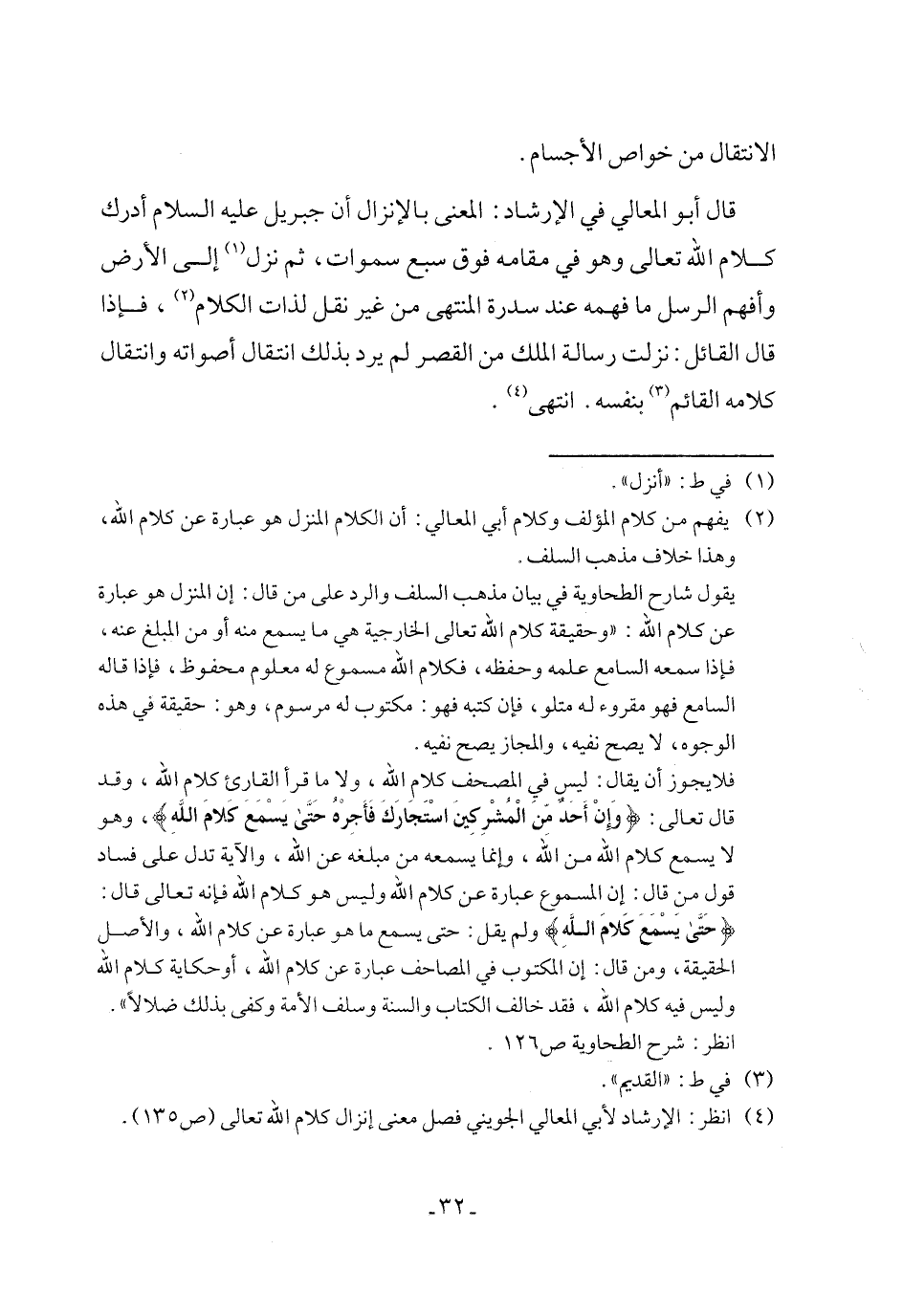 (¬4) انظر: الإرشاد لأبي المعالي الجويني فصل معنى إنزال كلام الله تعالى (ص 135).