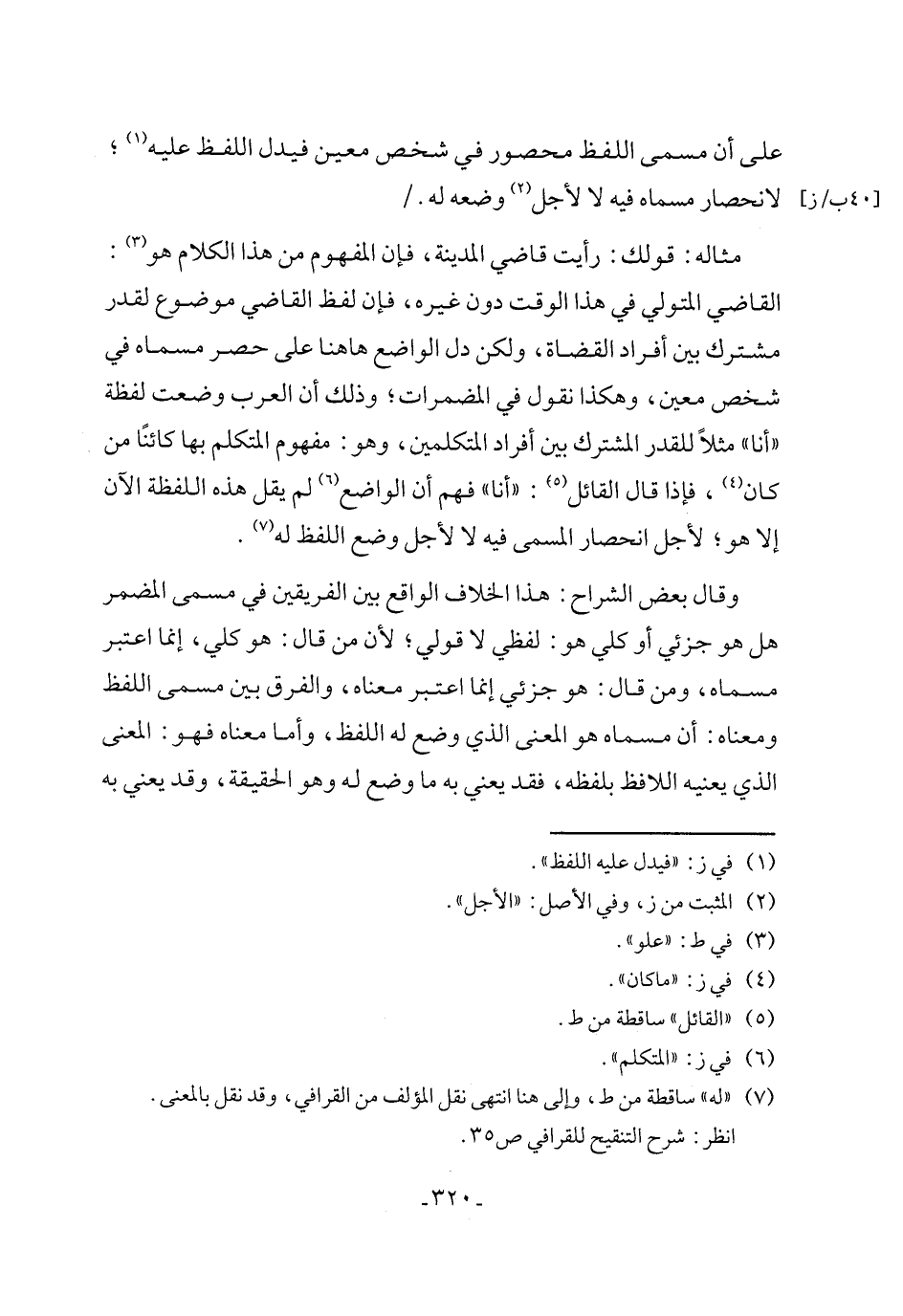 (¬7) "له" ساقطة من ط، وإلى هنا انتهى نقل المؤلف من القرافي، وقد نقل بالمعنى.
