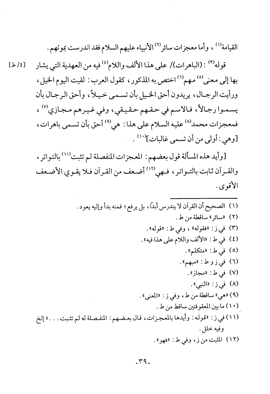 (¬11) في ز: "قوله: وأيدها بالمعجزات، قال بعضهم: المنفصلة له لم تثبت ... " إلخ وفيه خلل.