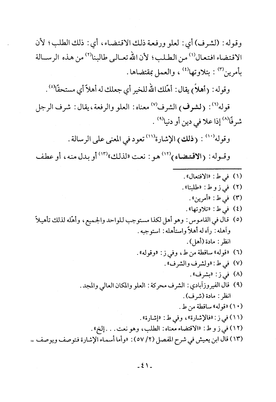 وقوله: (لشرف) أي: لعلو ورفعة ذلك الاقتضاء، أي: ذلك الطلب؛ لأن الاقتضاء افتعال (¬1) من الطلب؛ لأن الله تعالى طالبنا (¬2) من هذه الرسالة بأمرين (¬3): بتلاوتها (¬4)، والعمل بمقتضاها.