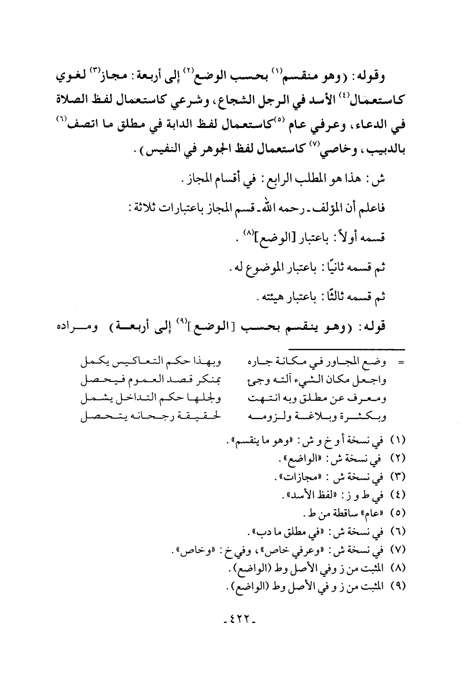 ش: هذا هو المطلب الرابع: في أقسام المجاز.