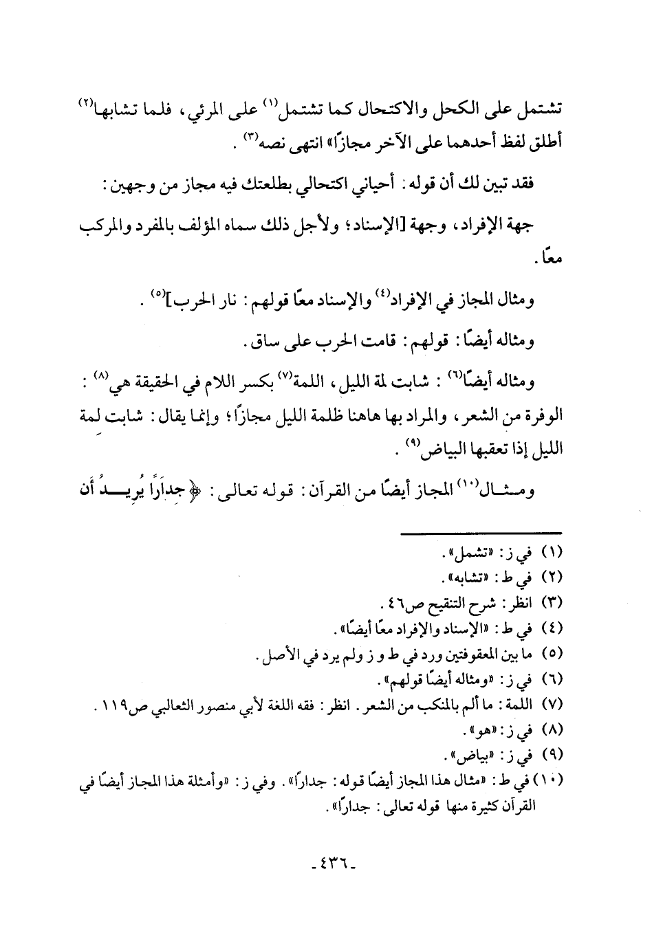 (¬10) في ط: "مثال هذا المجاز أيضًا قوله: جدارًا". وفي ز: "وأمثلة هذا المجاز أيضًا في القرآن كثيرة منها قوله تعالى: جدارًا".