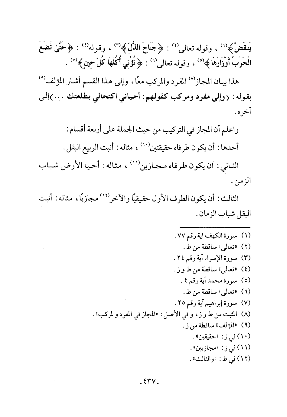(¬8) المثبت من ط وز، وفي الأصل: "المجاز في المفرد والمركب".