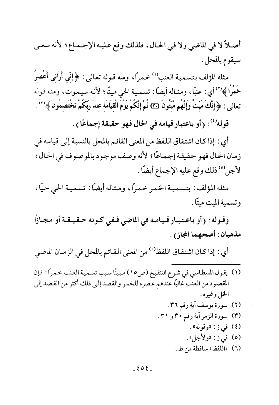 (¬1) يقول المسطاسي في شرح التنقيح (ص 15) مبينًا سبب تسمية العنب خمرًا: فإن المقصود من العنب غالبًا عندهم عصره للخمر والقصد إلى ذلك أكثر من القصد إلى الخل وغيره.
