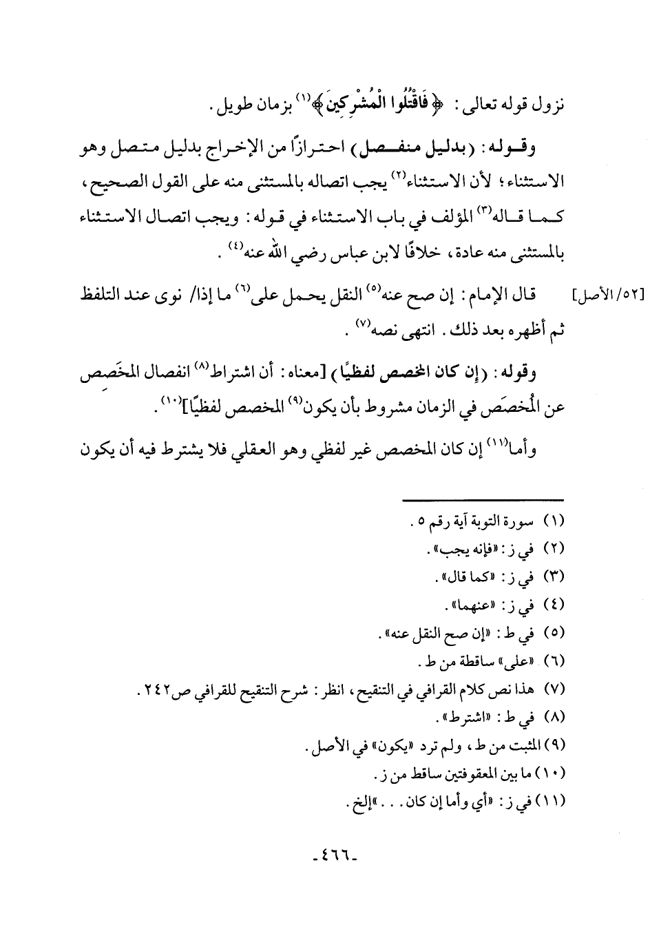 (¬7) هذا نص كلام القرافي في التنقيح، انظر: شرح التنقيح للقرافي ص 242.