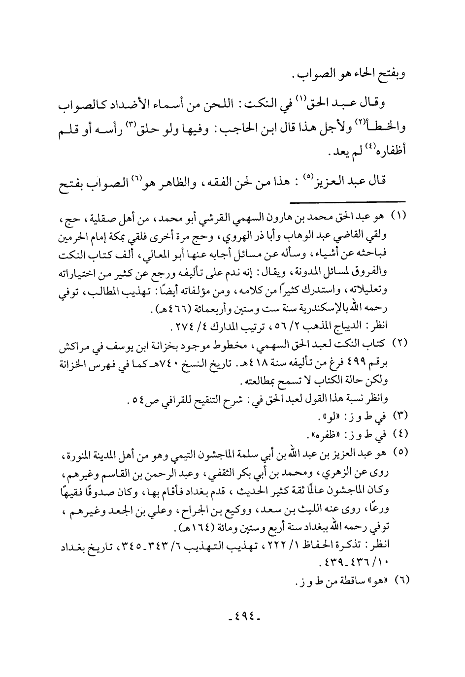 (¬2) كتاب النكت لعبد الحق السهمي، مخطوط موجود بخزانة ابن يوسف في مراكش برقم 499 فرغ من تأليفه سنة 418 هـ. تاريخ النسخ 740 هـ كما في فهرس الخزانة ولكن حالة الكتاب لا تسمح بمطالعته.