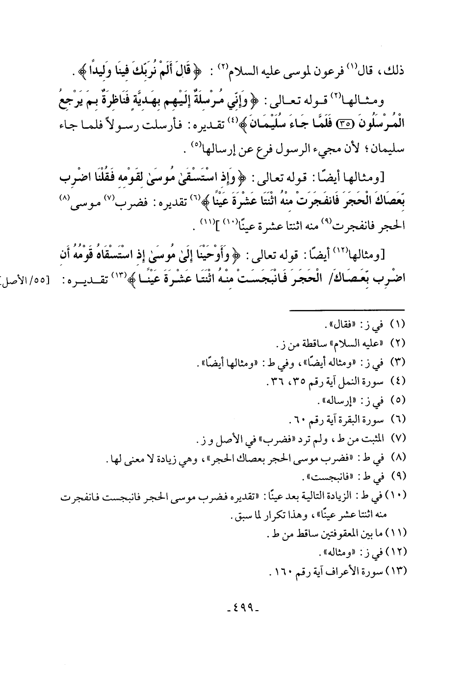(¬10) في ط: الزيادة التالية بعد عينًا: "تقديره فضرب موسى الحجر فانبجست فانفجرت منه اثنتا عشر عينًا"، وهذا تكرار لما سبق.