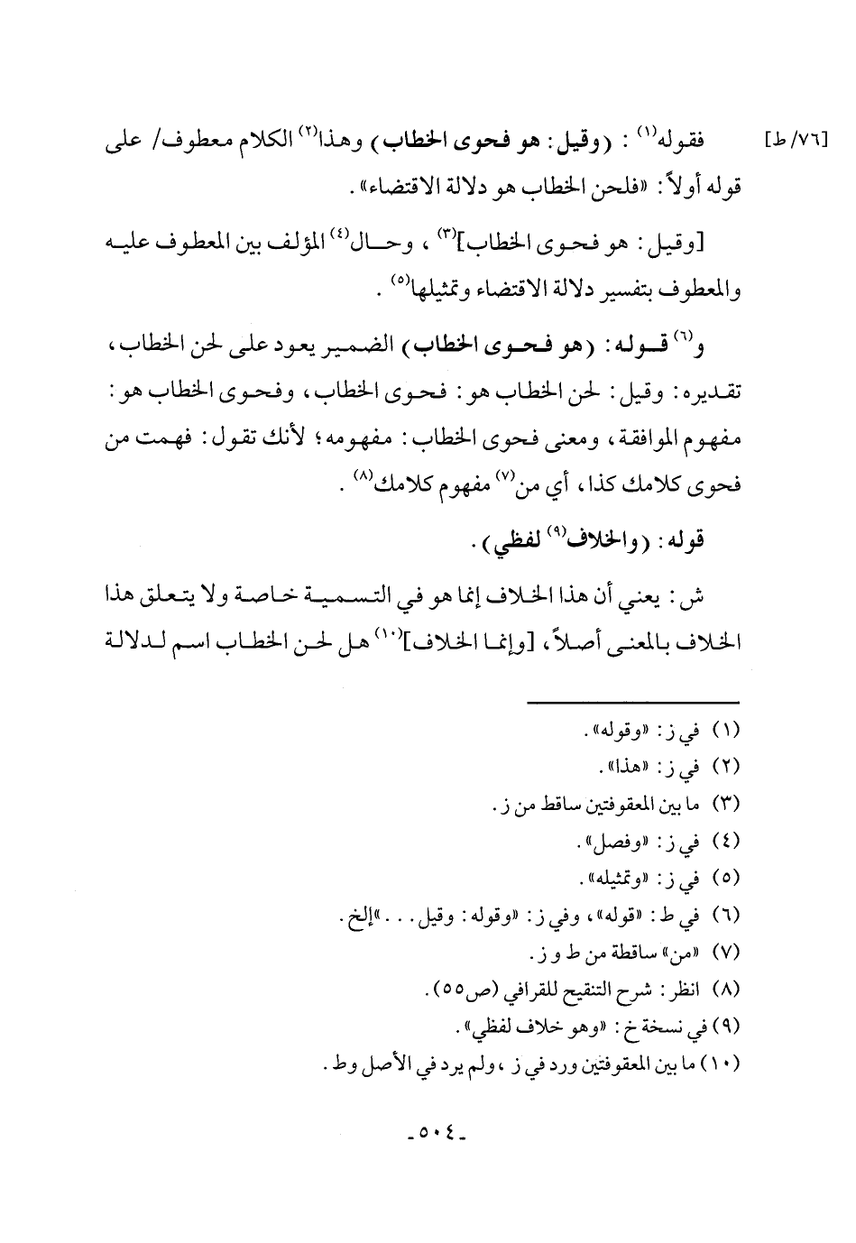 ش: يعني أن هذا الخلاف إنما هو في التسمية خاصة ولا يتعلق هذا الخلاف بالمعنى أصلًا، [وإنما الخلاف] (¬10) هل لحن الخطاب اسم لدلالة
